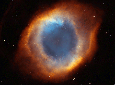 A counterclockwise zoom and rotation sequence of the Helix Nebula. The Hubble’s Advanced Camera for Surveys image of the Helix Nebula reveals thousands of comet-like filaments embedded along the inner rim of the nebula that point back towards the central star.
